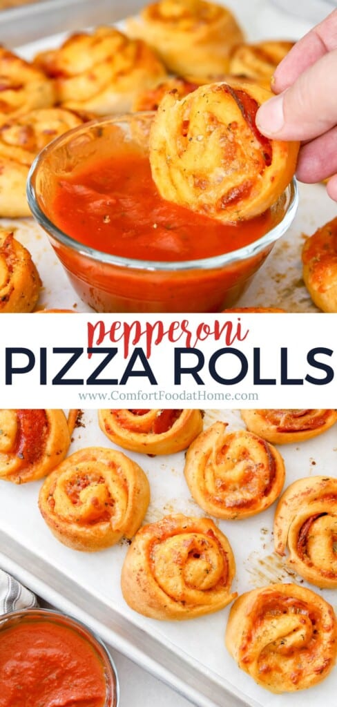 Each roll is layered with tangy marinara sauce, salty pepperoni and two kinds of cheese, then brushed with garlic butter for extra flavoring. Baked on a lined baking sheet until golden brown, they come out of the oven hot and gooey—perfect for dipping in your favorite pizza sauce or other sauces like pesto or ranch.